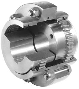 The MT coupling is torsionally stiff and formed by two crowned hubs which engage two flanged sleeves with internal straight parallel teeth
